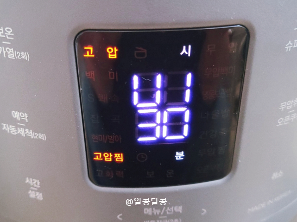 고압찜으로 설정 한 다음에 취사버튼을 눌러줍니다.