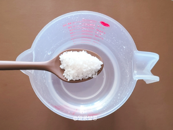 미지근한 물 300ml, 굵은소금 1큰술을 넣고