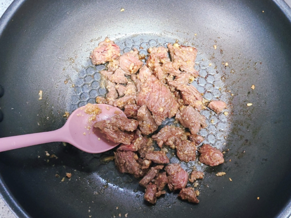 소고기가 익은 색으로 변할 때까지 볶아줍니다.
