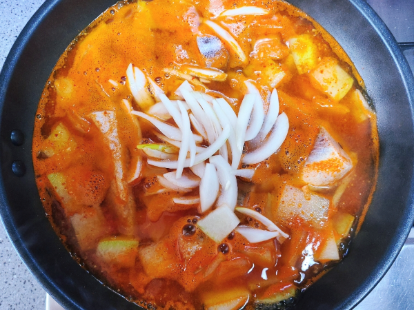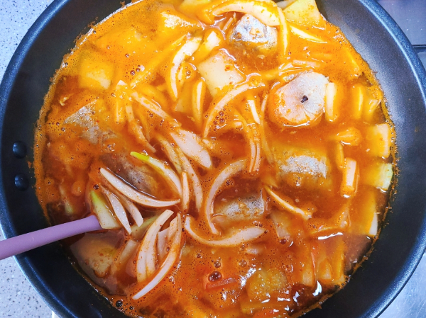 동태와 양파를 넣고 뒤적여주고