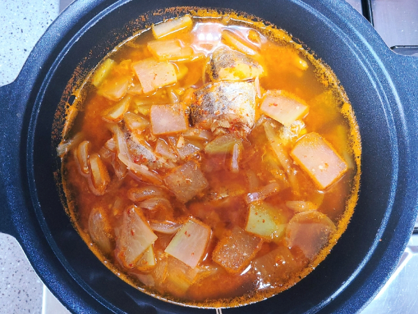 10분간 끓인 동태찌개는