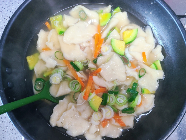 수제비 채소는 금방 익어요.