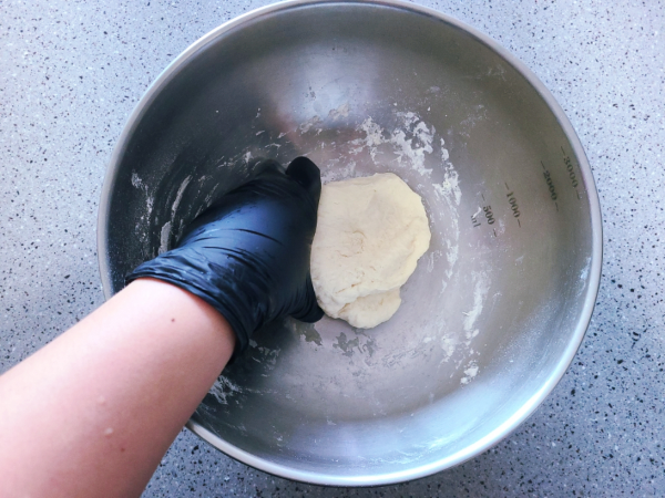반죽이 뭉쳐지면 일회용 장갑을 끼고