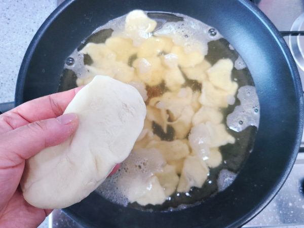 식용유를 넣어 수제비반죽을 만든 다음에