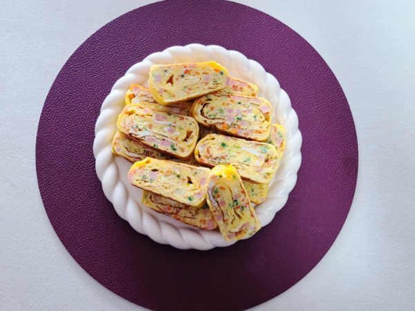 계란반찬 야채 계란말이 레시피 완성입니다.