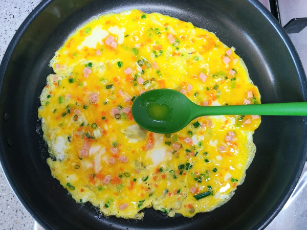 계란물이 살짝 익은 한쪽 부분부터