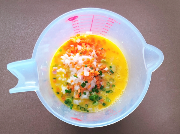 계란과 야채를 골고루 섞은 다음에