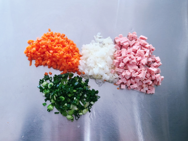 당근, 양파, 스팸은 잘게 썰고,