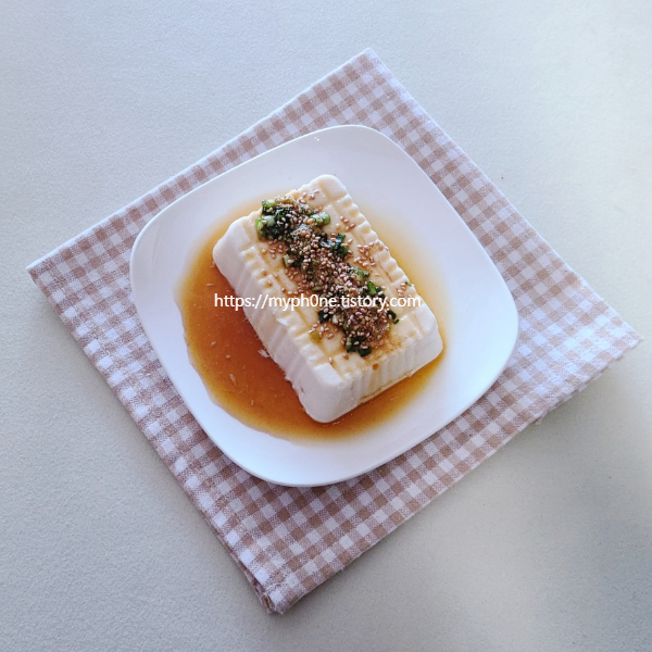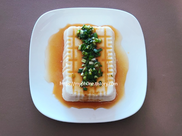 초간단 요리 연두부 먹는법 완성입니다.