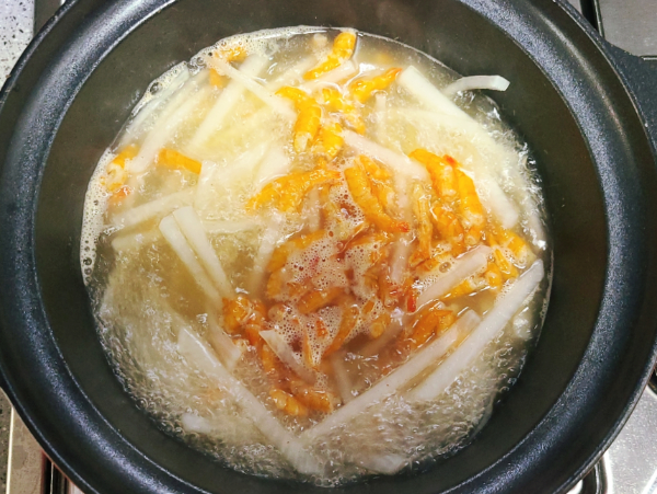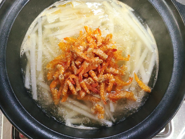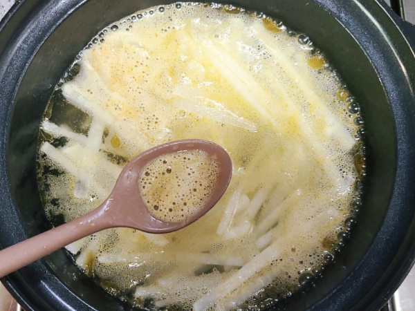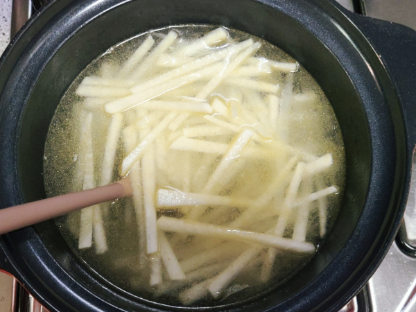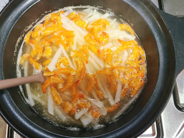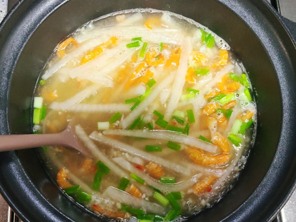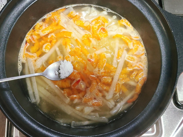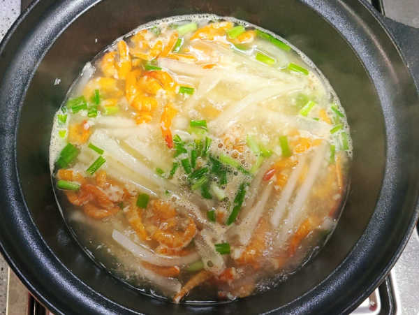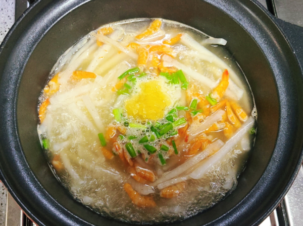 맑은국 뭇국 국물이 보글보글 끓어오르면서