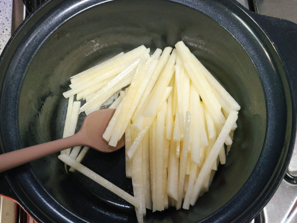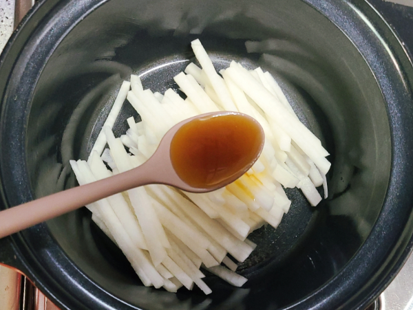 고기를 넣지 않고 무를 달달 볶아 끓여주는