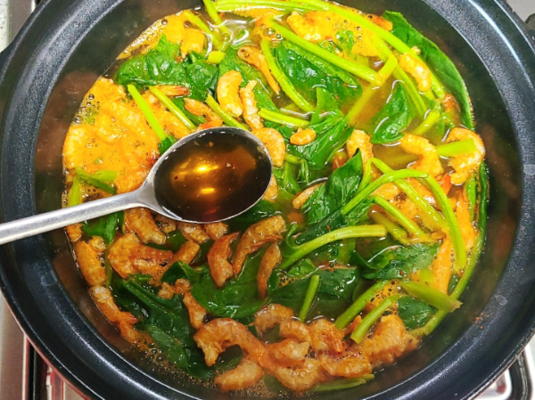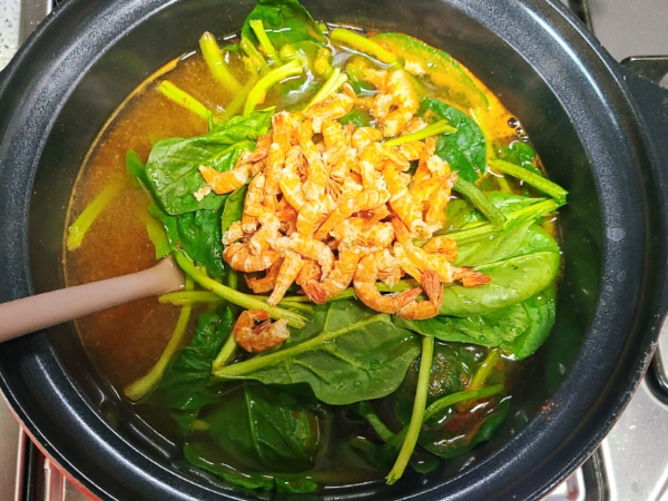 건새우를 넣고 끓이면 시금치된장국의