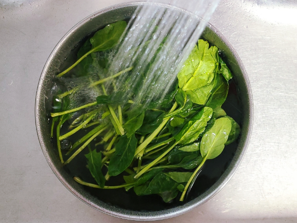 볼에 시금치가 잠길 정도의 물을 받고