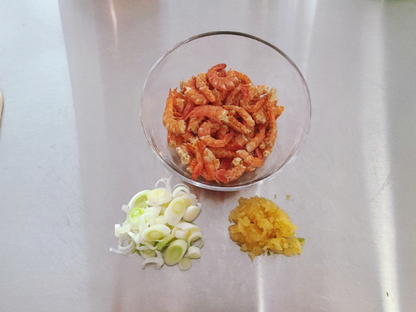 건새우 15g, 다진 마늘 0.7큰술을 준비하고