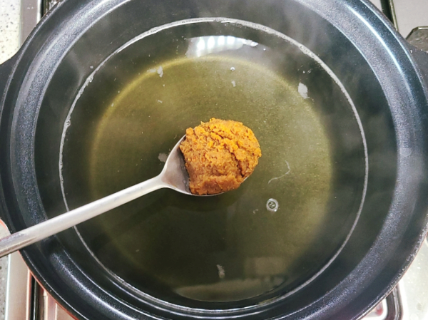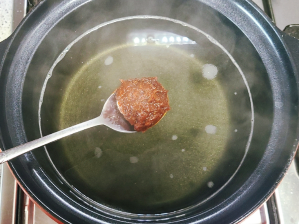된장국 육수가 끓어오르면