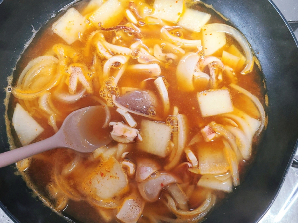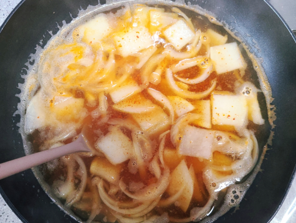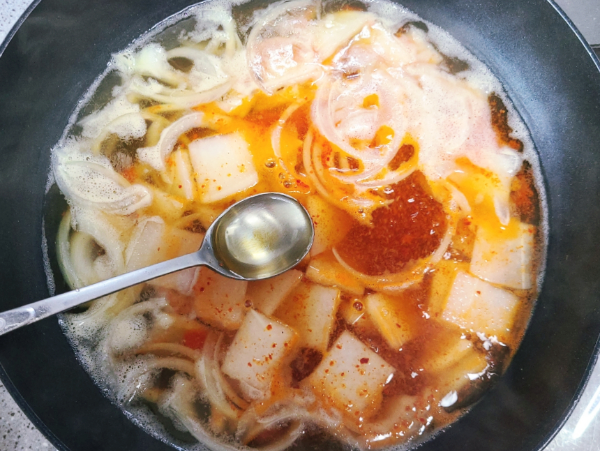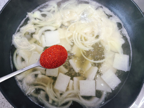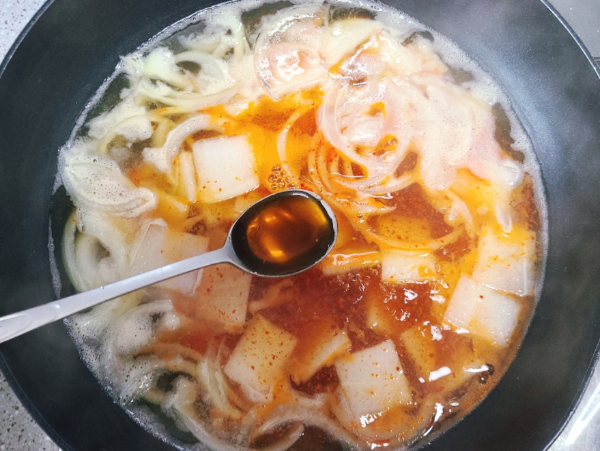 2. 쌀뜨물 + 동전 육수 넣고 끓이기