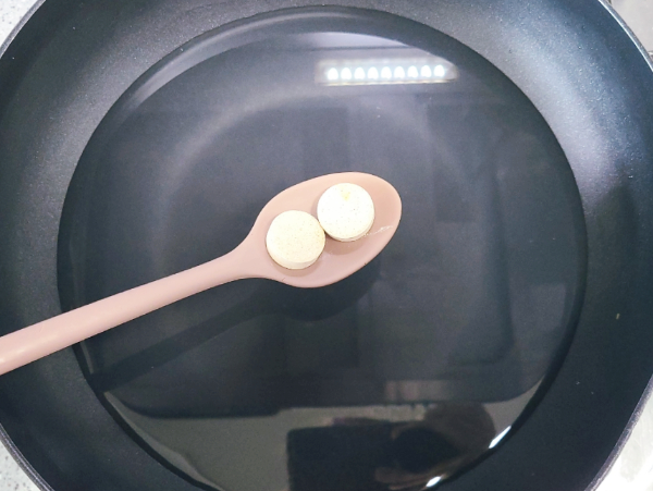 냄비에 쌀뜨물 750ml와 동전 육수 2개를 넣고